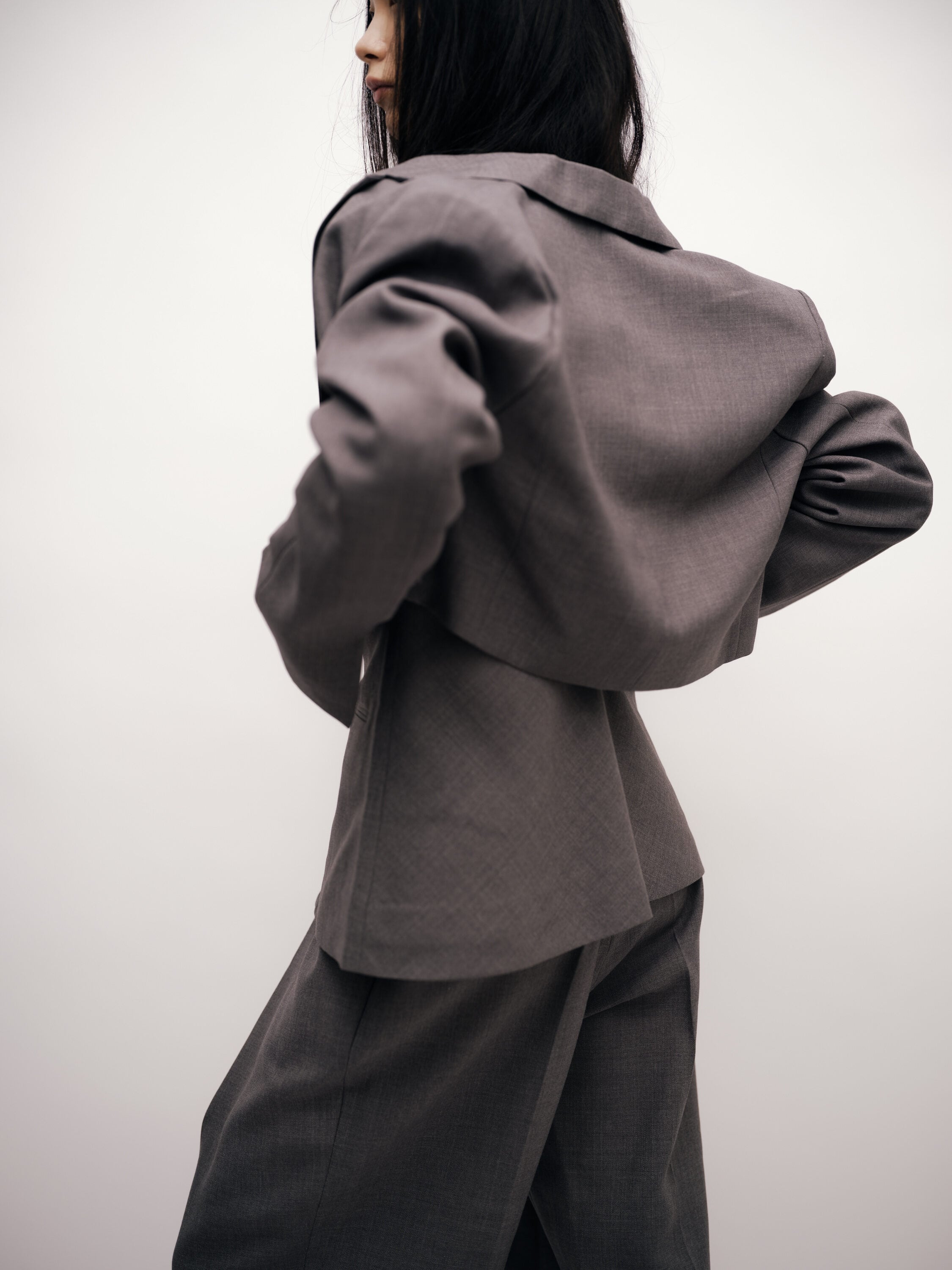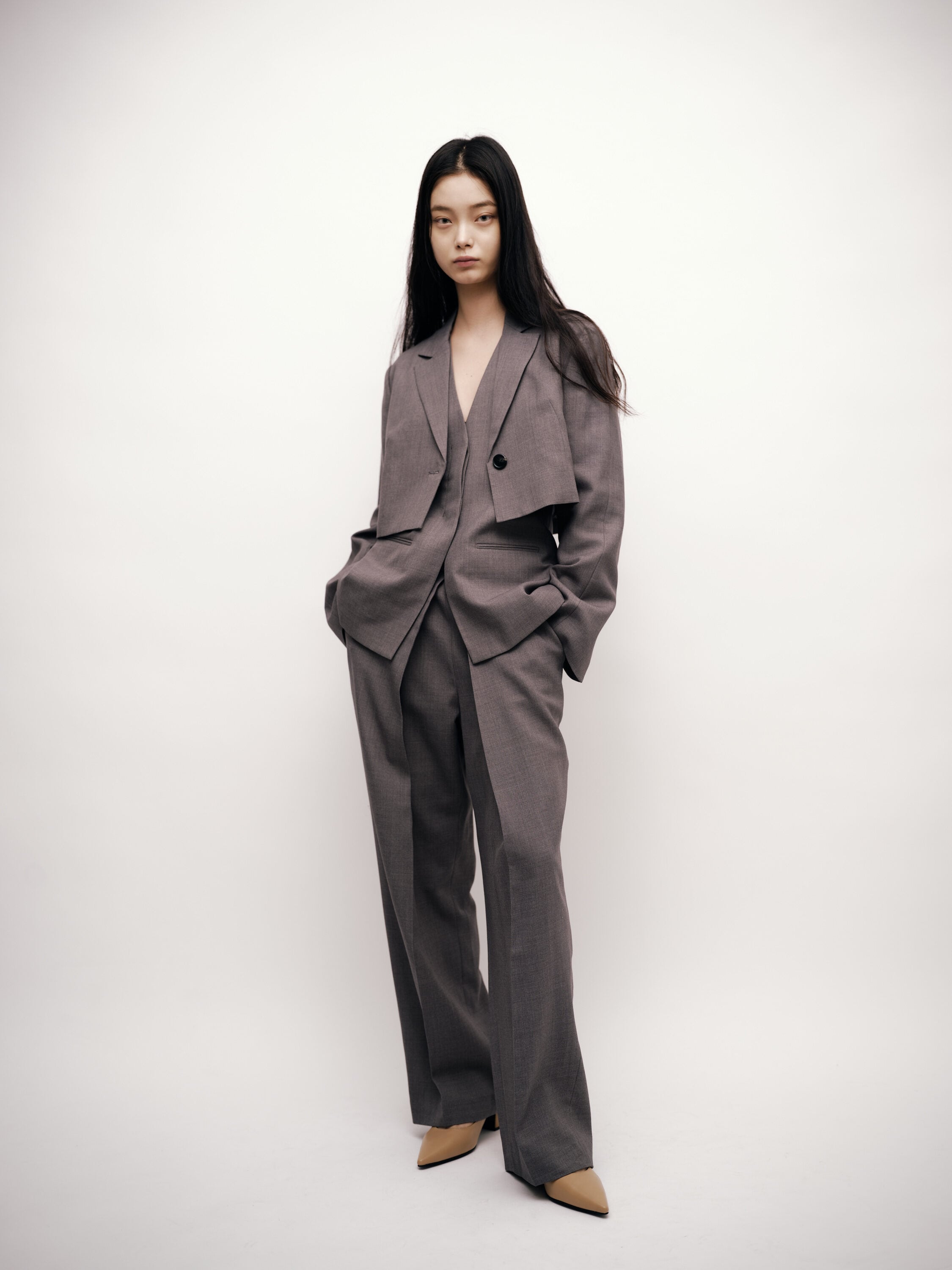 ショート丈のデザインはウエスト位置を高く見せ、脚長効果も抜群。セットアップとしてモードに着こなすのはもちろん、単品でも幅広いシーンで活躍する万能アイテムです。